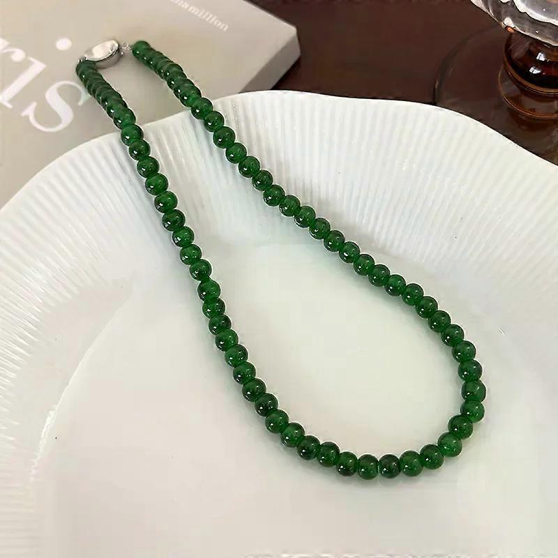 Minar 2024 New 4 6 8 10mm Green Color Glass Beads Strand Beaded Necklace for Women Female Silver Plated Toggle Clasp Chokers