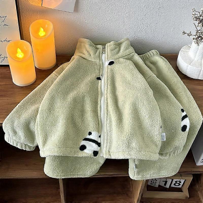 Winter 2-Piece Children New Warm Plush Pajama Sets Cute Cartoon Boys Girls Thicken Coat+pants Home Clothing Kids Baby Pajamas