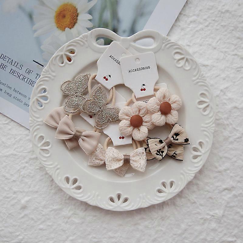 10Pcs Children's Flower Hair Accessories Hair Bow Headwear Rope Cute Girls Hair Bands Trendy Handmade Elastic Lovely Hairbands