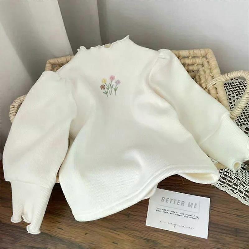 Baby Girls Top Winter Kids Warm Thickening Sweater Children Puff Sleeve Flower Embroidery Bottom Shirt 1-6 Years Casual Clothing