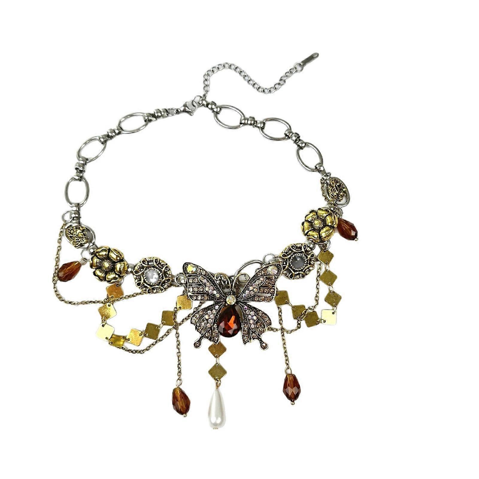 Gothic Chain Necklace for Women, Rhinestone Butterfly Water Drop Pendant, Trendy Halloween Jewelry for Daily Wear, Banquet&Party