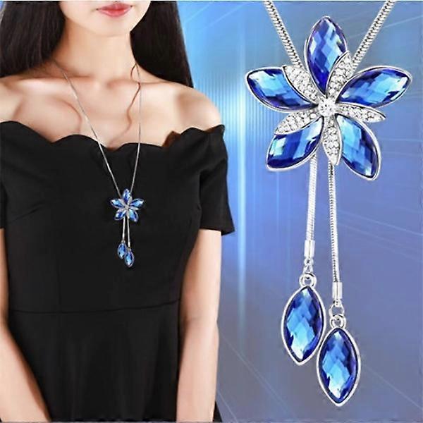 Fashion Wreath Zircon Sweater Chain Long Necklace Korean Tassel Rose Flower Ballet Girl Charm Pendant Necklace Jewelry For Women