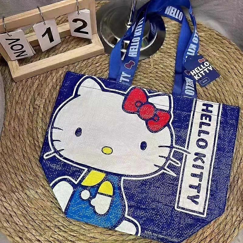 Sanrio Hellokitty Kawaii Anime Klein Blue Cat Handheld Shopping Bag Miniso kitty Woven Bag Gift Toys for Girls