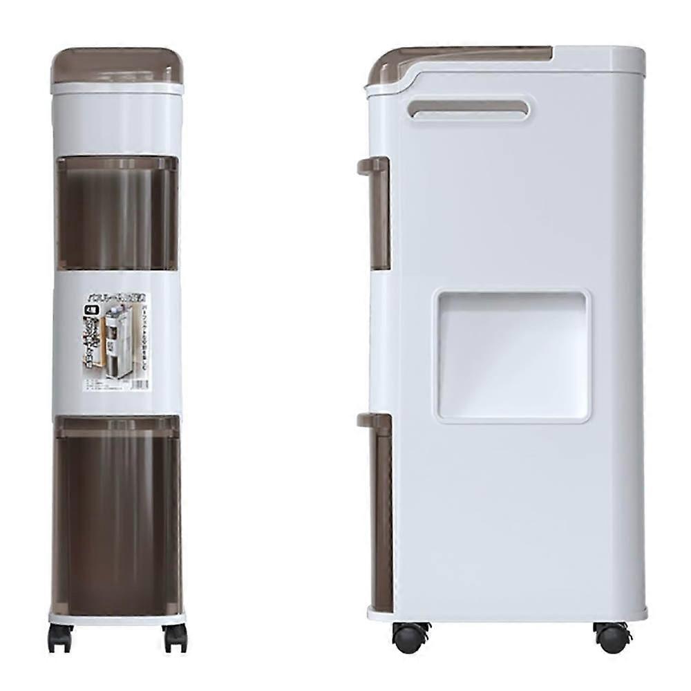 Bathroom Narrow Storage Cabinet Rolling Cart with Trash Can Multi-Tier Toilet Organizer Drawer, No Installation