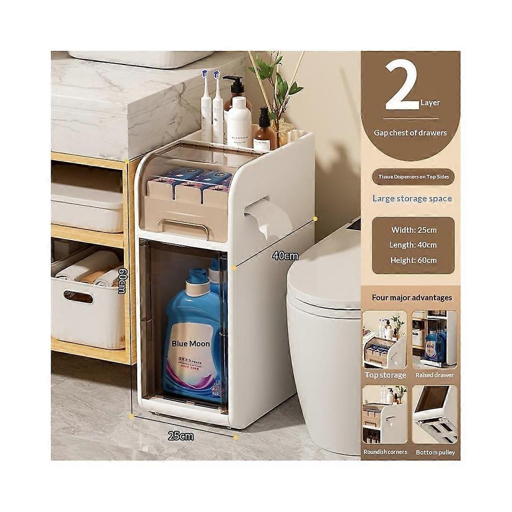 25cm Slim Bathroom Storage Cart 2-Tier Narrow Cabinet Toilet Organizer with Wheels for Home