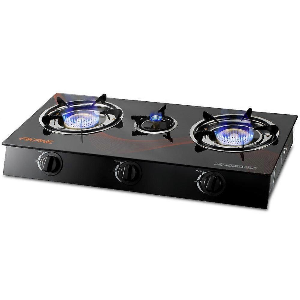 AKANE A.8052 Tempered Glass Desktop Gas Stove 3 Burners Kitchen Cooktop with Independent Adjustment Knobs