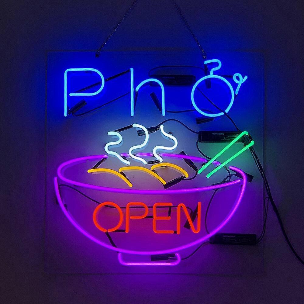PHO OPEN Vietnamese Noodle Shop Neon Sign - 24"x20" Handmade Real Glass Restaurant Window Light & Wall Decor Art