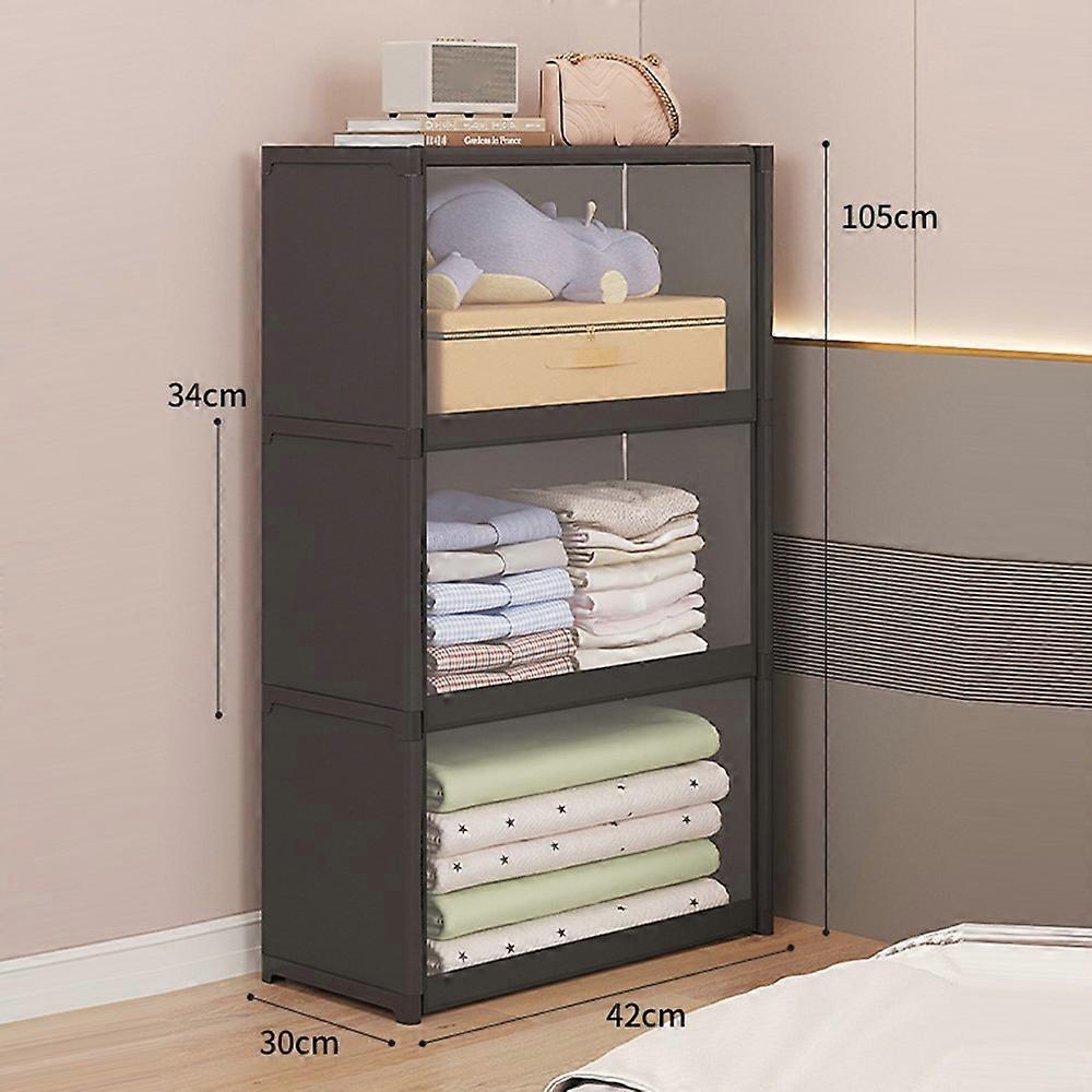 3-Tier 42cm Length Clothes Container Holder Dust-Proof Assembly Clothes Storage Cabinet with Clear Flip-Top Door for Bedroom