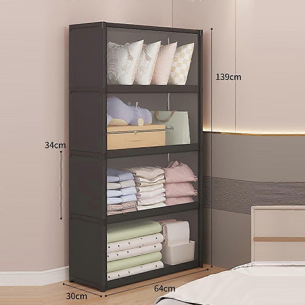 4-Tier 64cm Clothes Container Holder Dust-Proof Assembly Clothes Storage Cabinet with Clear Flip-Top Door for Bedroom