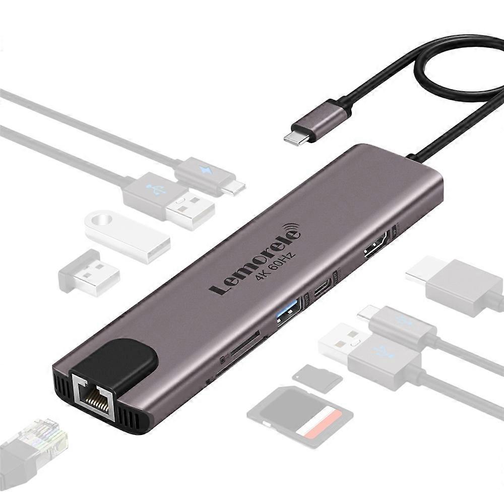 LEMORELE TC46 10 in 1 USB-C Docking Station Type-C Hub Adapter with RJ45 Ethernet / HD / TF Card Ports for Laptops