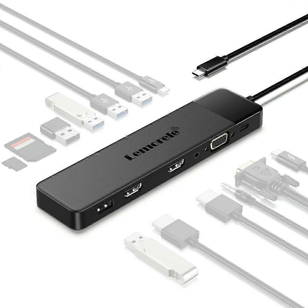 LEMORELE TC200 13 in 1 USB-C Hub Adapter Multi-Functional Docking Station with HD / VGA / USB Ports for Home / Office