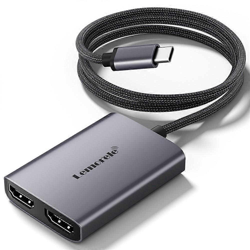 LEMORELE H20 USB-C to Dual HD Hub Adapter 2 in 1 Docking Station Support 4K / 30Hz Display for Windows / MacOS