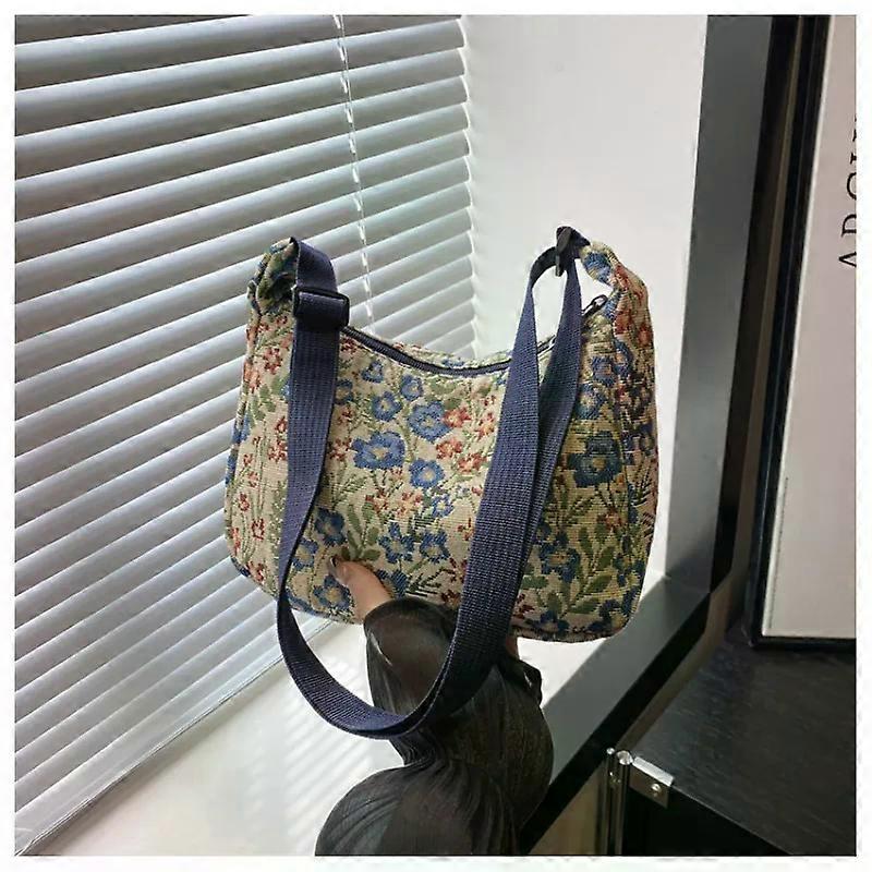 Women Small Underarm Bag Chinese Style Shoulder Bag Versatile Literary Prints Cloth Crescent Pack Portable Women's Handbags