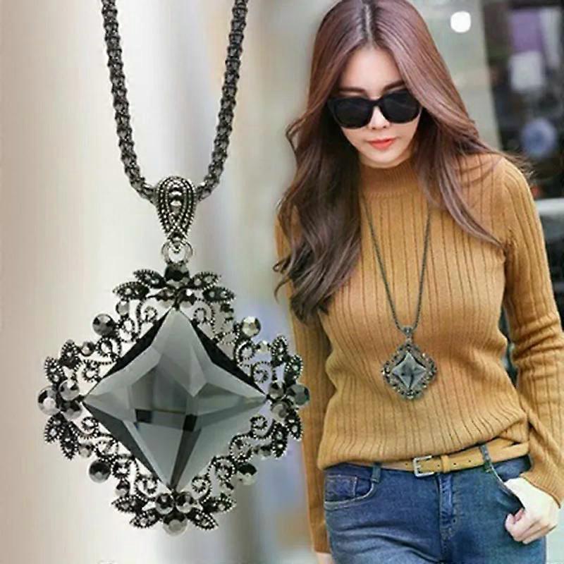 Versatile Sweater Chain Temperament Opal Tulip Decoration Long Necklace Women's Autumn Winter Clothes Pendant Accessories