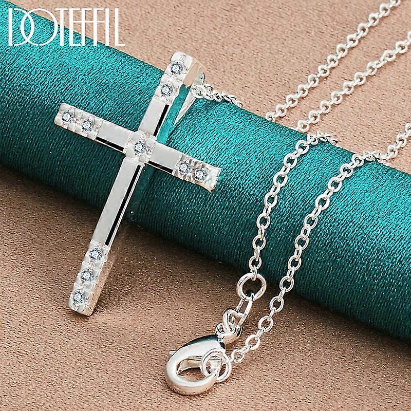 DOTEFFIL 925 Sterling Silver AAA Zircon Cross Pendant Necklace 16-30 Inch Chain For Women Man Fashion Wedding Charm Jewelry