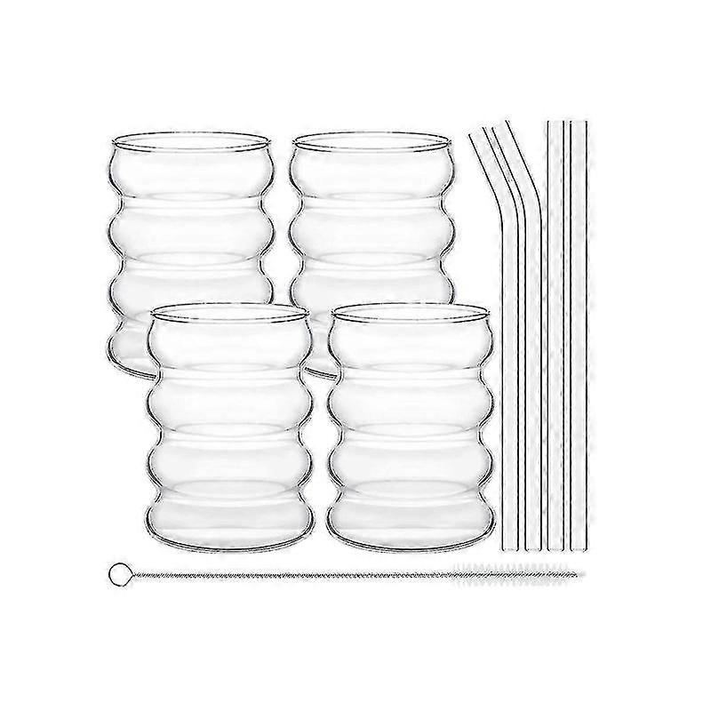 Ripple Ribbed Glassware Set 4 Pack Water Glasses with Straw