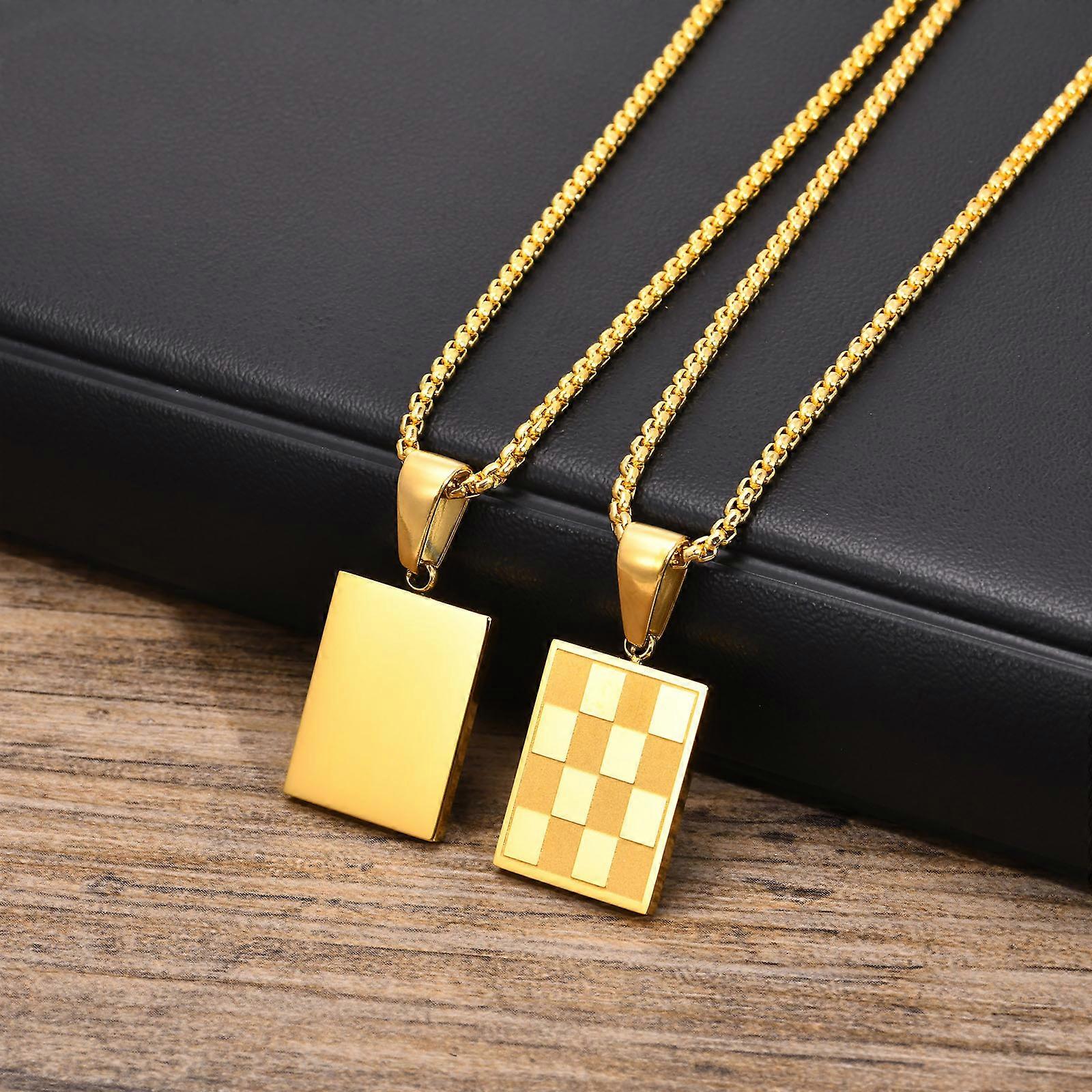 Mprainbow Men's Square Checkerboard Necklace,Waterproof Stainless Steel Checkered Geometric Pendant Collar Birthday Gift Jewelry