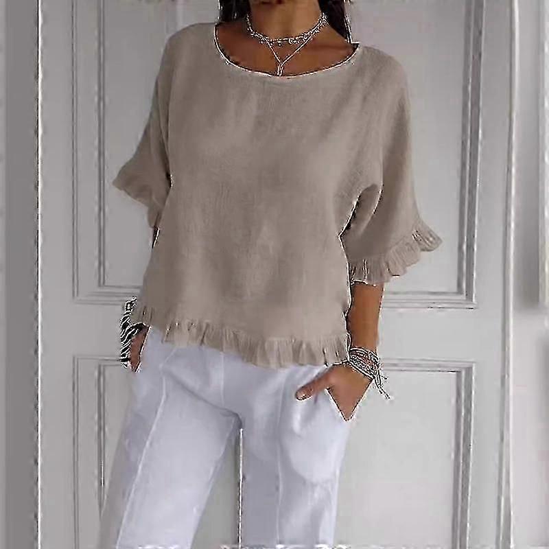 cotton linen blouse for women summer short sleeve round neck