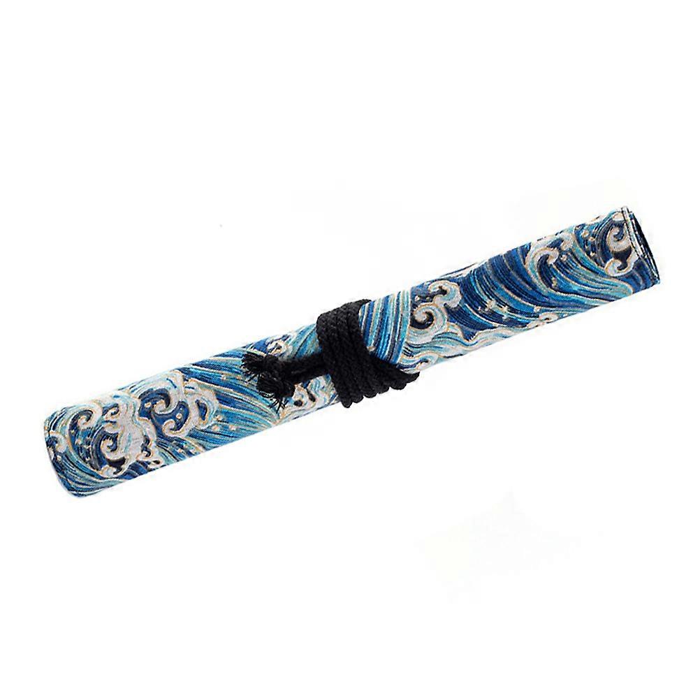 Canvas 20 Slots Paint Brush Roll Wrap Blue Artist Brush Holder for Students
