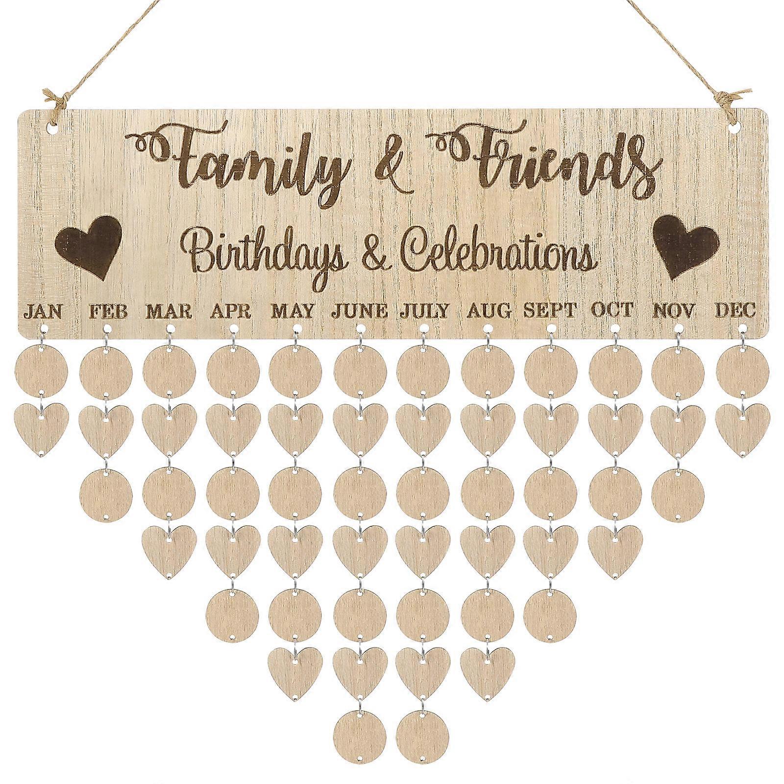 Nordic Style Family and Friends Birthday Celebration Reminder Wooden DIY Calendar 1 Set Hanging Decoration
