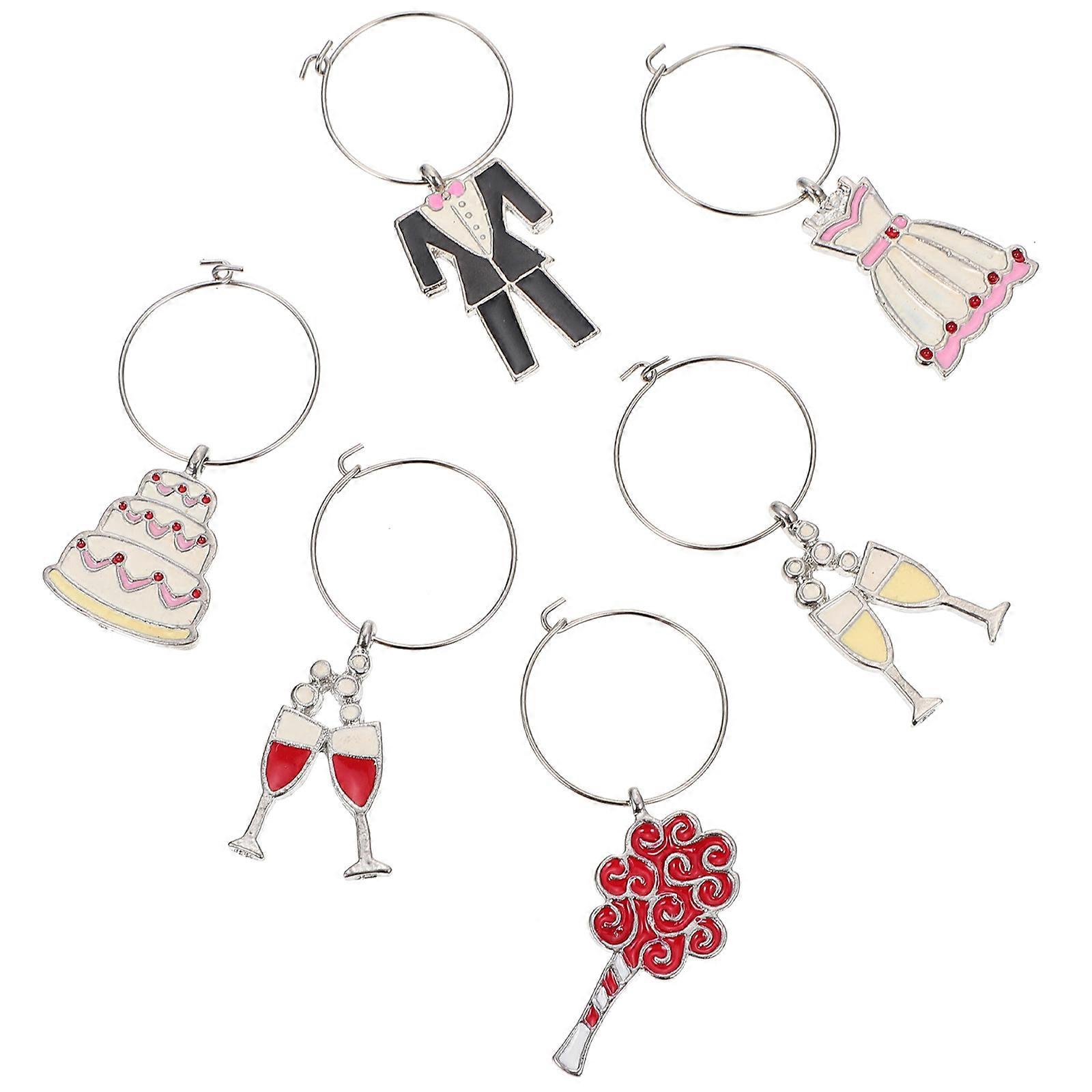 Adorable Wine Glass Charms Wedding Themed Decorations in Assorted Colors and Exquisitely Crafted 6pcs