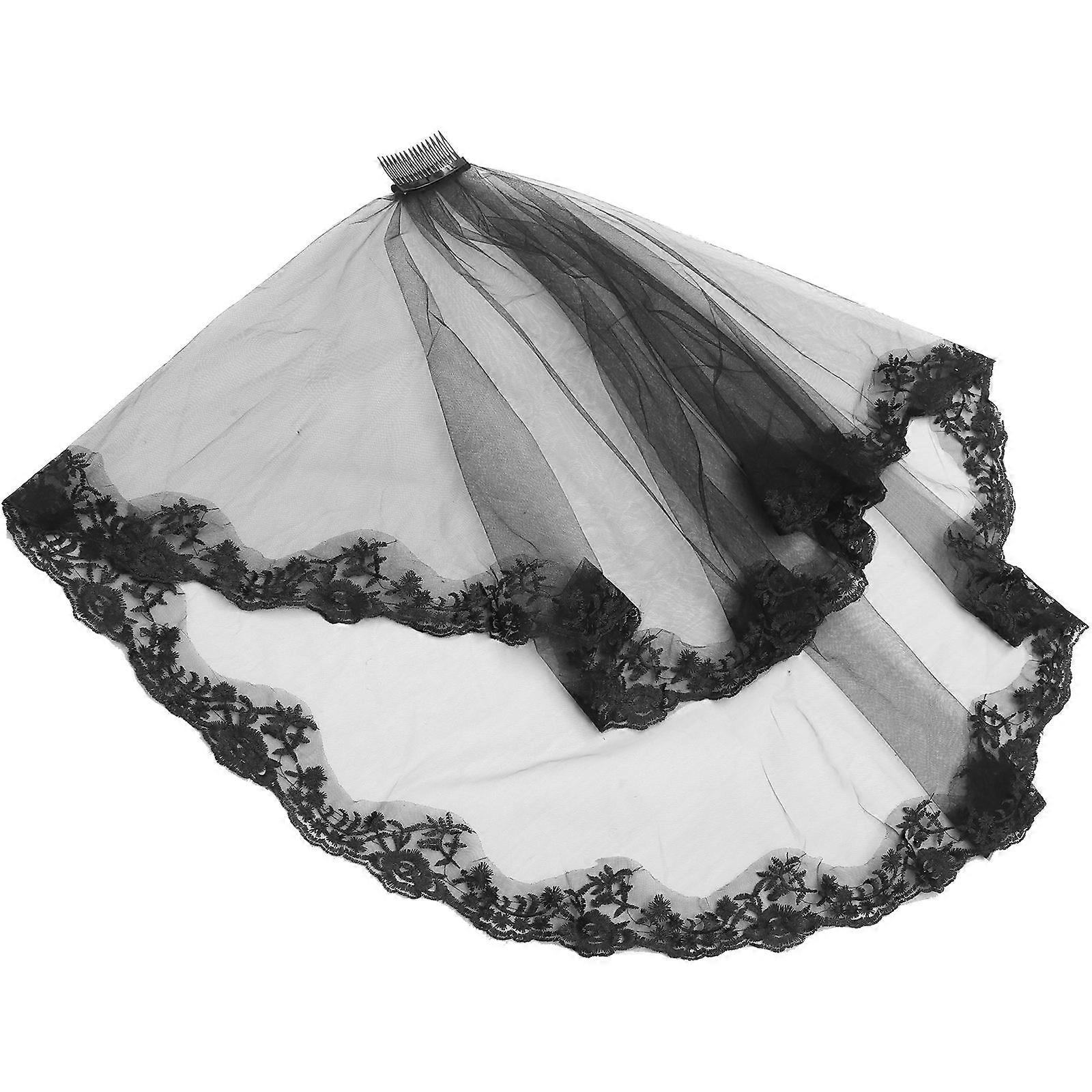 Black Lace Cathedral Wedding Veil With Ribbon Border - Versatile For Brides, Halloween Costumes, And Studio Decoration Funeral Face Veil