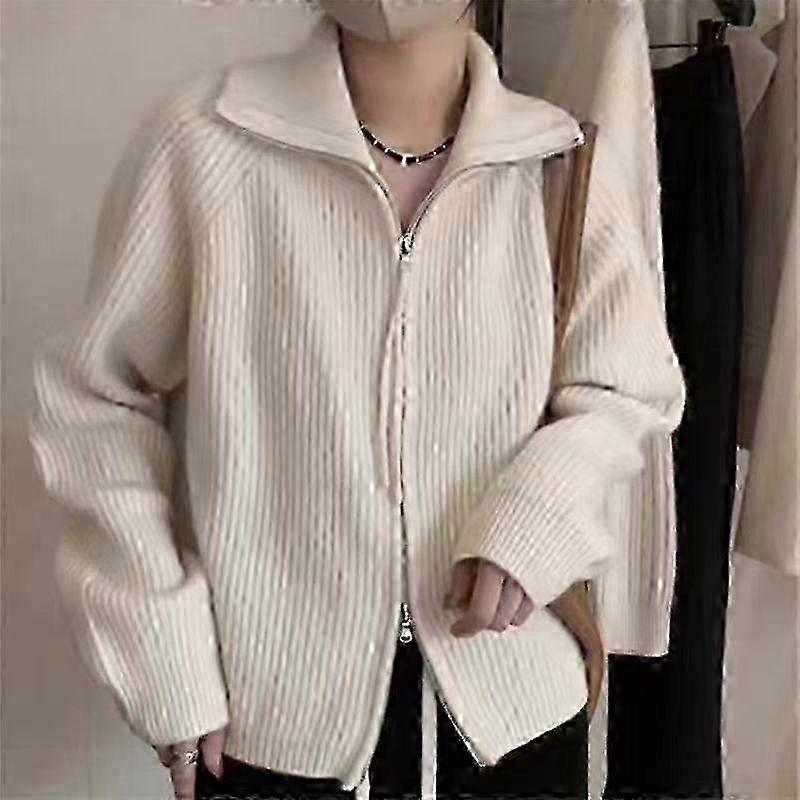 2025 Knitted cardigan sweater female spring and autumn lapel zipper sweater long sleeve solid women foreign outerwear cardigan