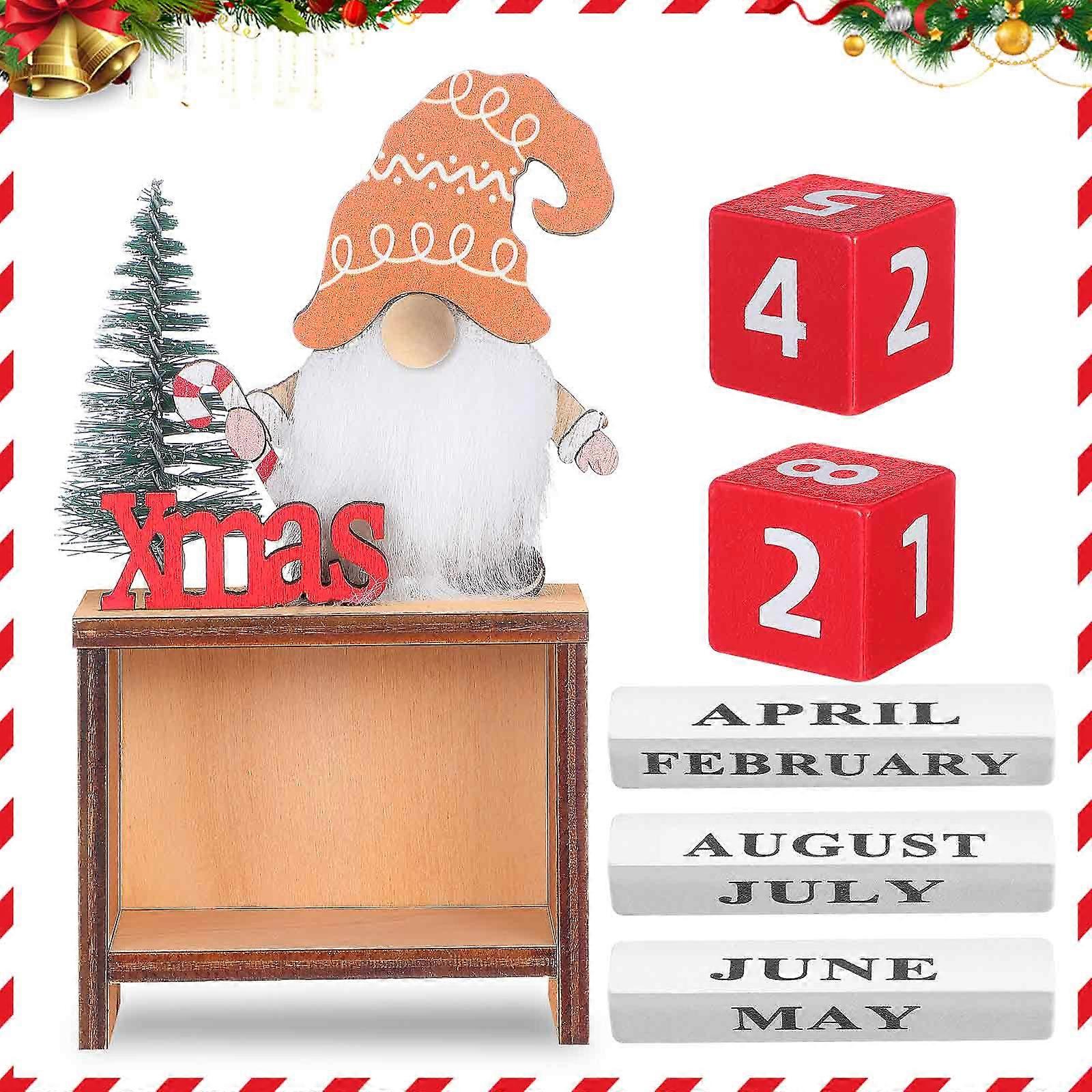 Red Christmas Calendar Wooden Blocks for Reminding 1 Piece Desktop Ornament