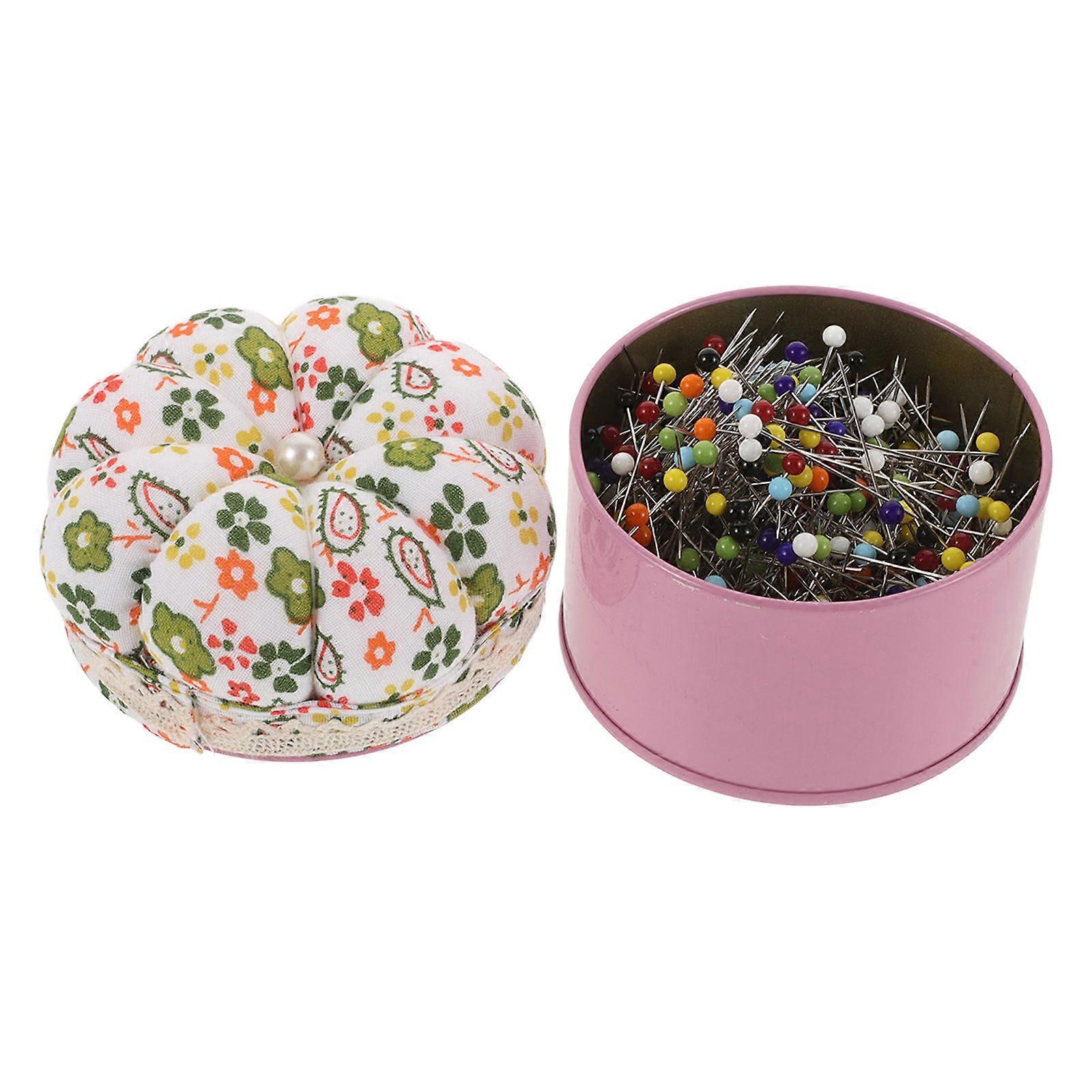 500Pcs Glass Pearlized Head Sewing Pins In Iron Needle Box Pumpkin Shaped Pin Cushion Set For Dress Making And Jewelry Making