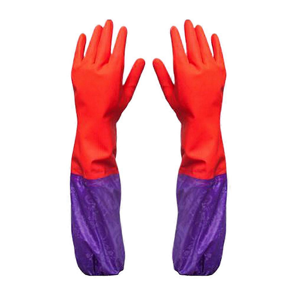 Warm Washing Gloves Rubber for Hand Protection 1Pair Red Waterproof Cleaning Gloves