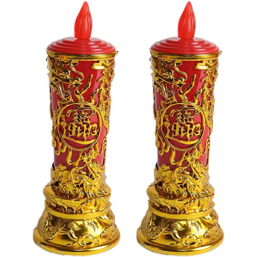 1 Pair of Worship Candle Lights Electric Fake Candle Buddhism Candle Light Worship Table Decor