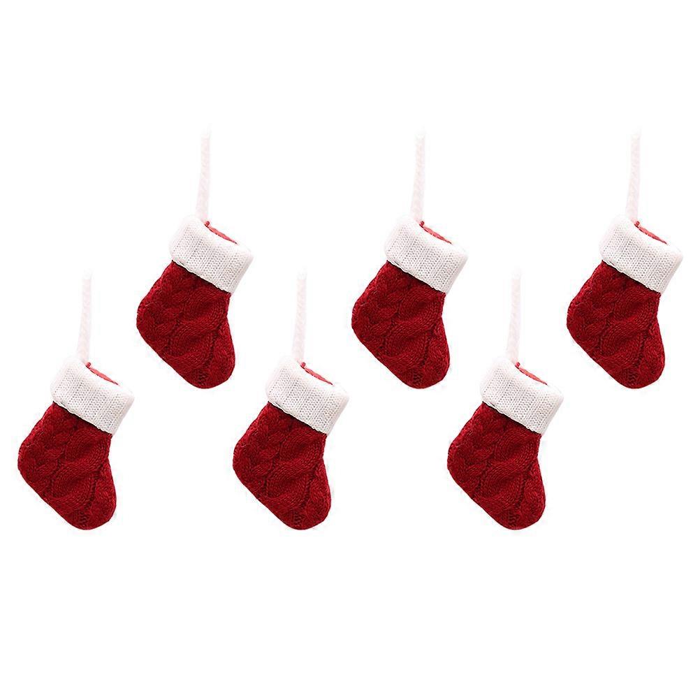 Christmas Themed Red Knit Cutlery Holder Sock Tableware Bag 6Pcs