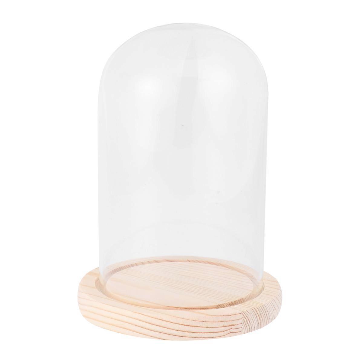 Flower Glass Cover Transparent Handmade Dome on Wooden Base for DIY Craft and Valentine Gifts 9x15cm