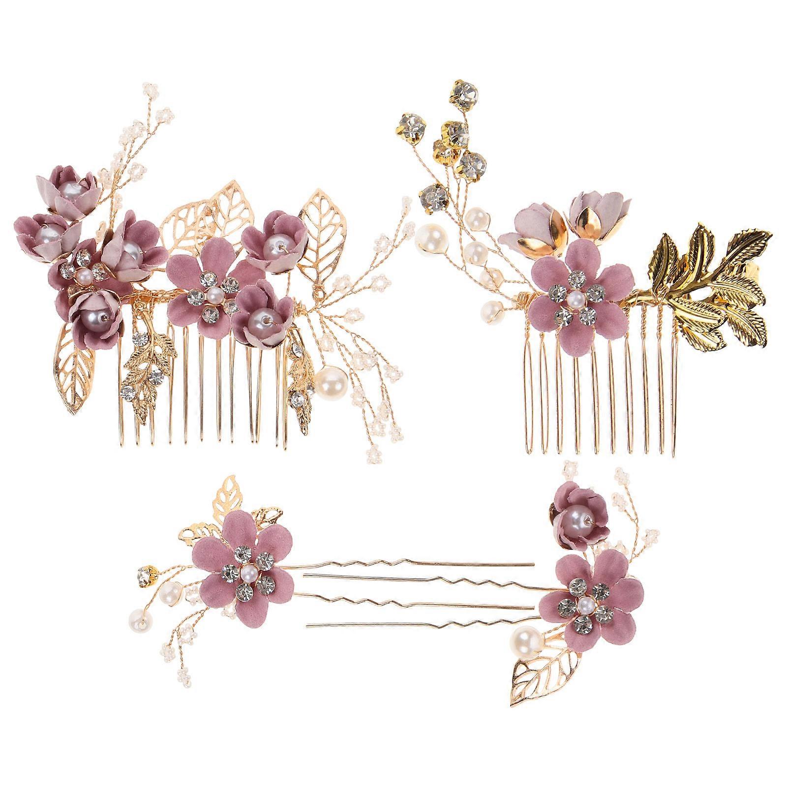 Bridal Hair Comb Set with Delicate Crystal for Wedding Special Occasions in Purple 4 Pieces