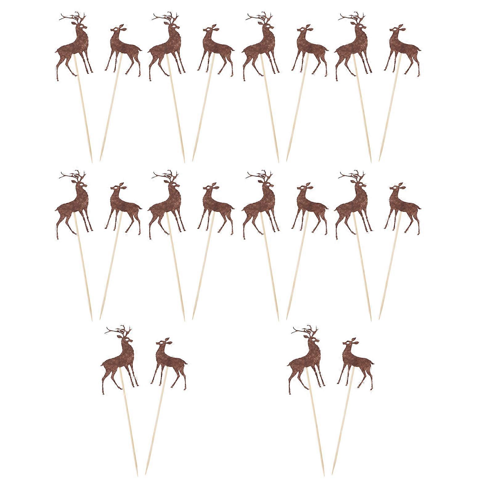 20pcs Christmas Cake Topper Felt Decor for Xmas Coffee Color Creative Dessert Insert Size