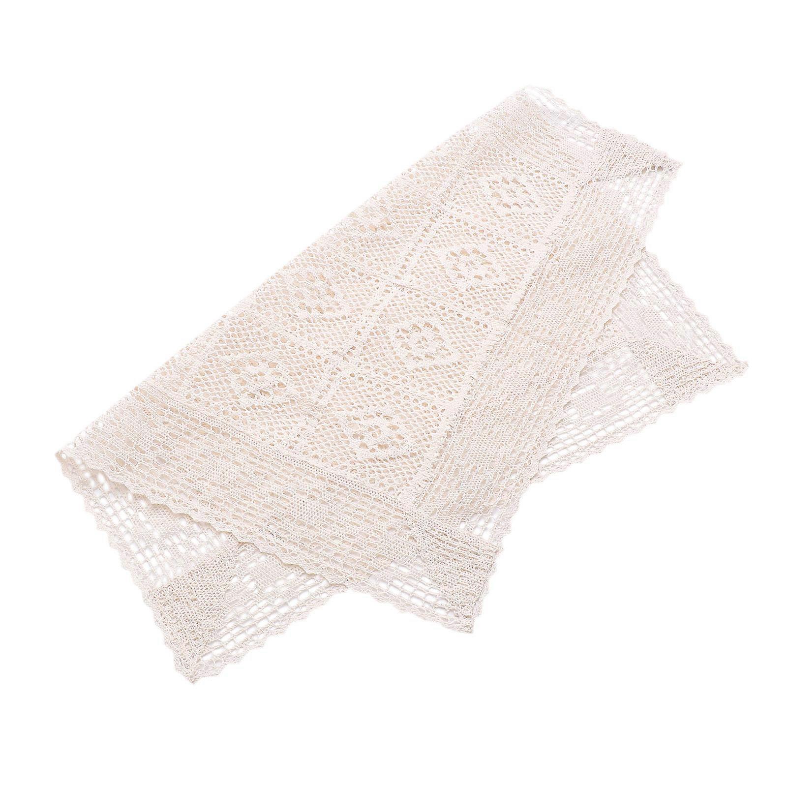 Crochet Table Cloth Rural Simple Style Dust Prevention 60x66cm Beige 1Pack