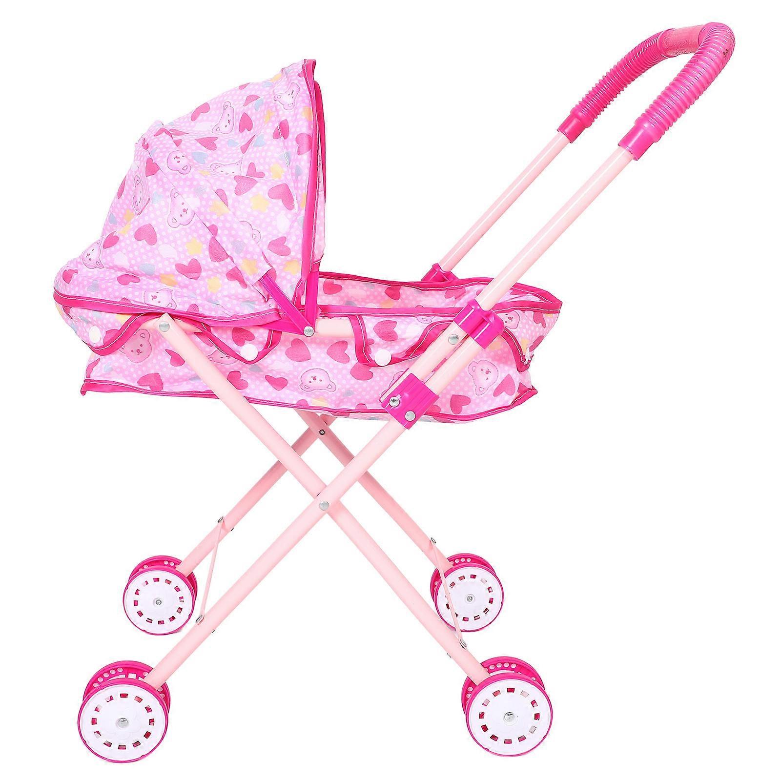 Pink Doll Stroller Iron Frame Baby Doll Stroller for Kids Imaginative Play