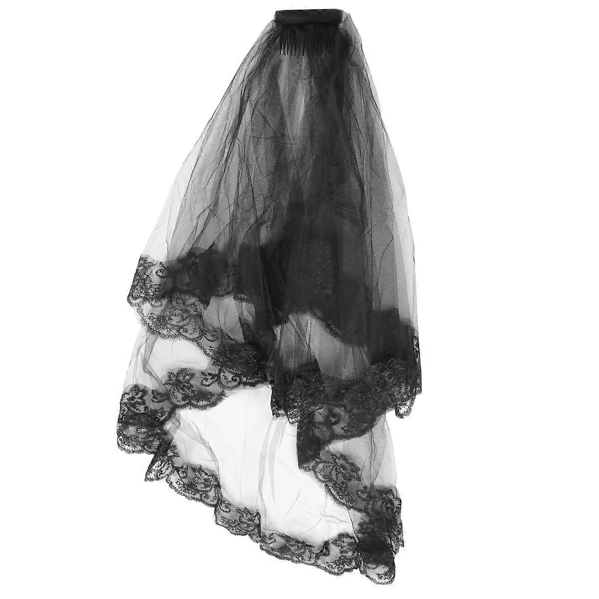 Black Double Layer Halloween Veil Mesh Lace For Photography Women 80x60cm Hair Accessory 1Pcs