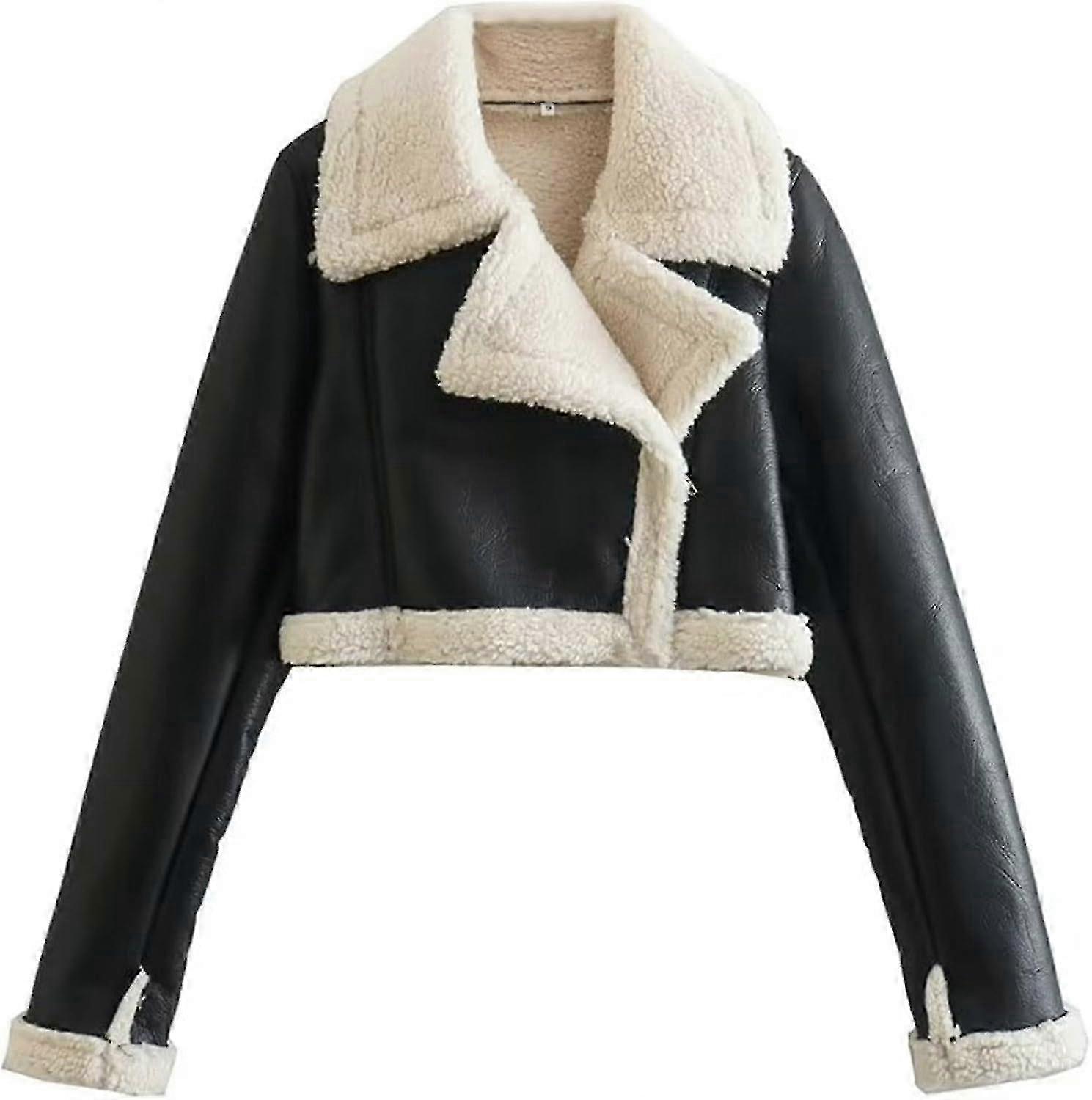 Women Winter Leather Jacket Thicken Fleece Lined Motorcycle Jacket Faux Fur Shearling Fluffy Coat Cropped Bomber\xa0Jacket 2025