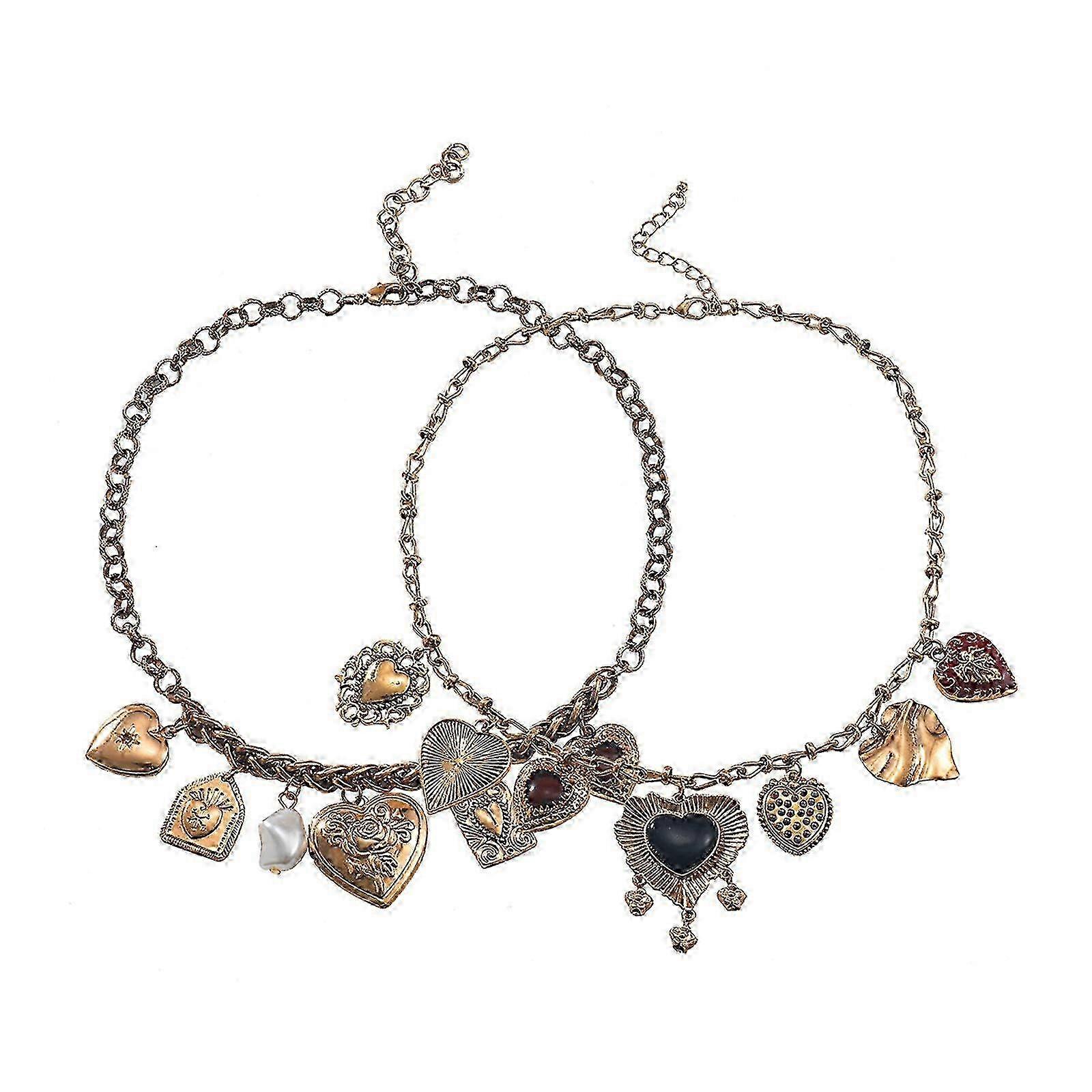 2025 Vintage Geometric Double Layer Heart Pendant Necklace Adjustable Length Neckchain for Women Elegant Party Jewelry Gift
