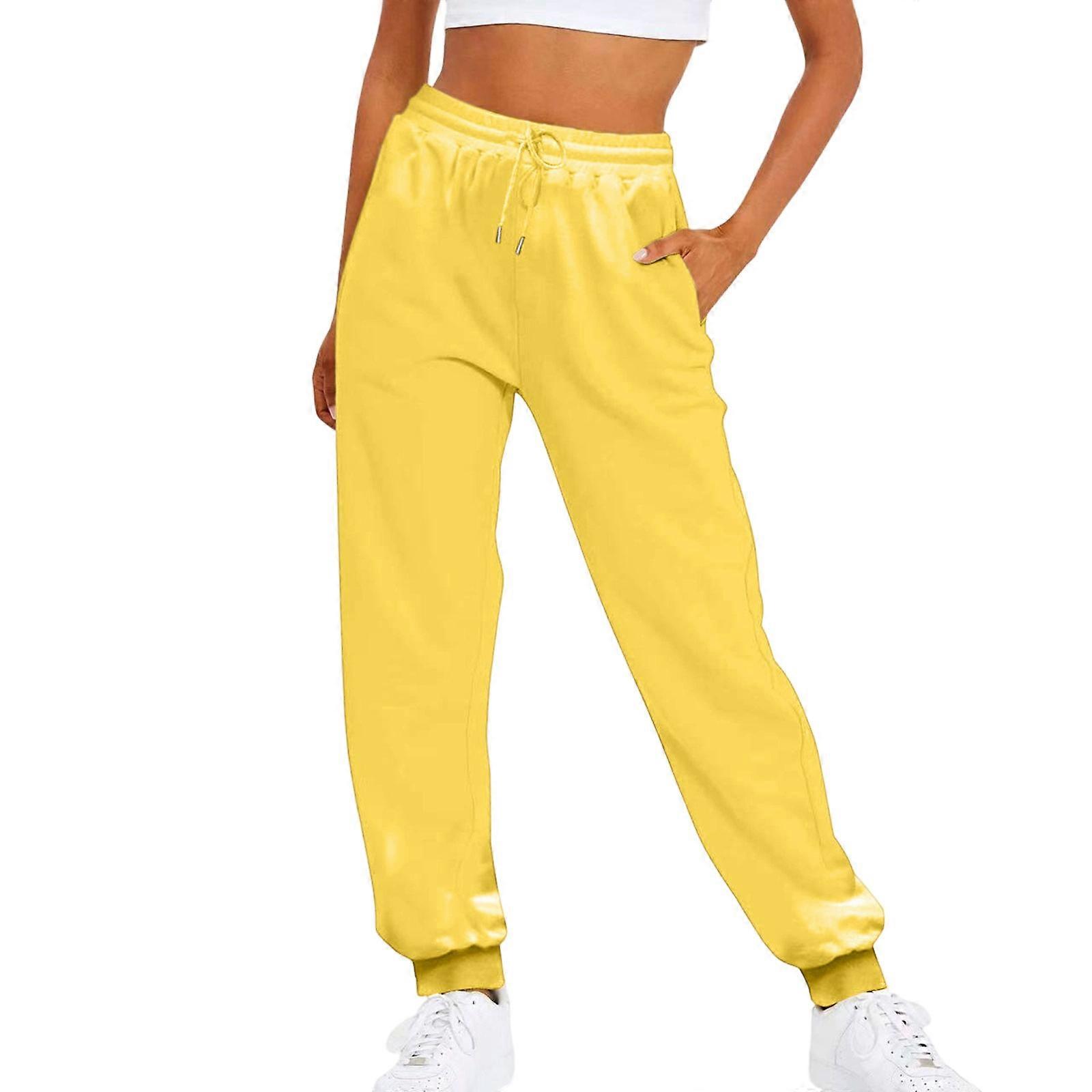 Women's winter new loose casual sports elastic sweatpants Yellow XL