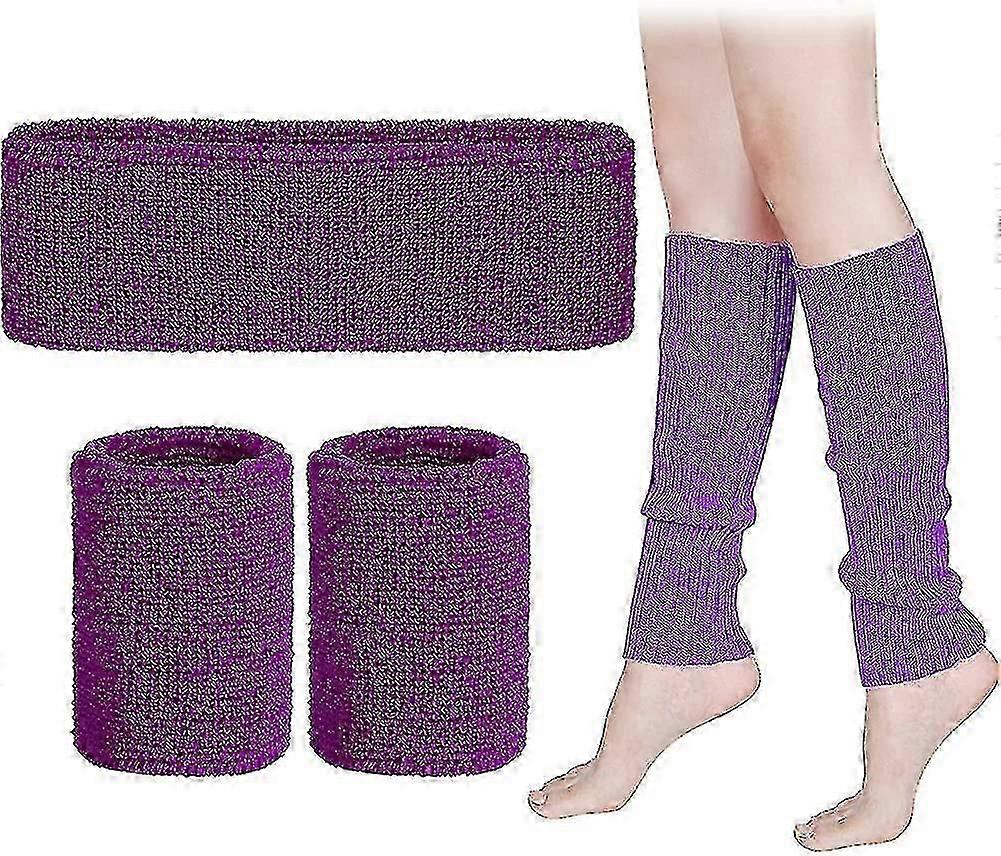 80s Neon Leg Warmers Set with Headband & Wristbands for Women