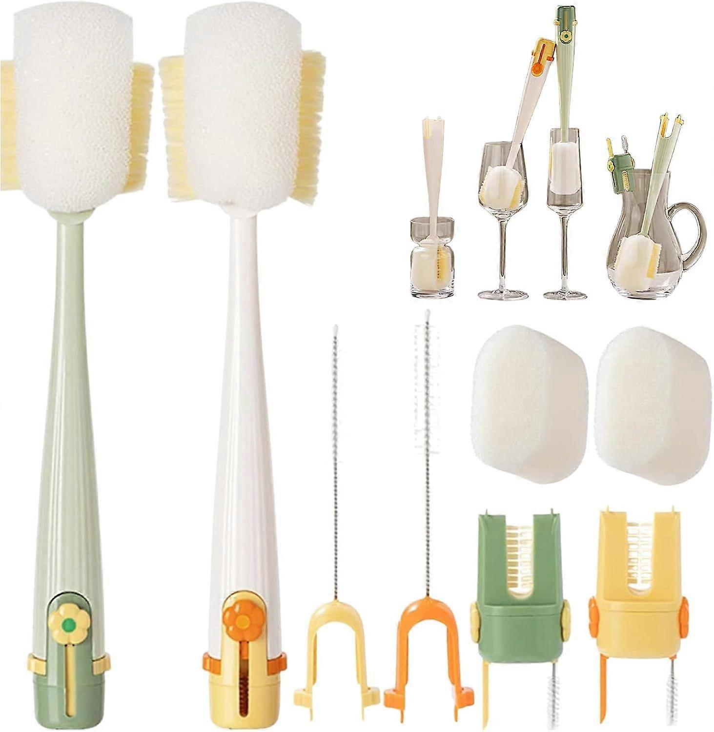 2 Pack Baby Bottle Brush, 5 in 1 Travel Baby Bottle Brush Set, Including Silicone Bottle Cleaner Brush, U-Shaped Rim Brush, Straw Brush, Crevice Brush