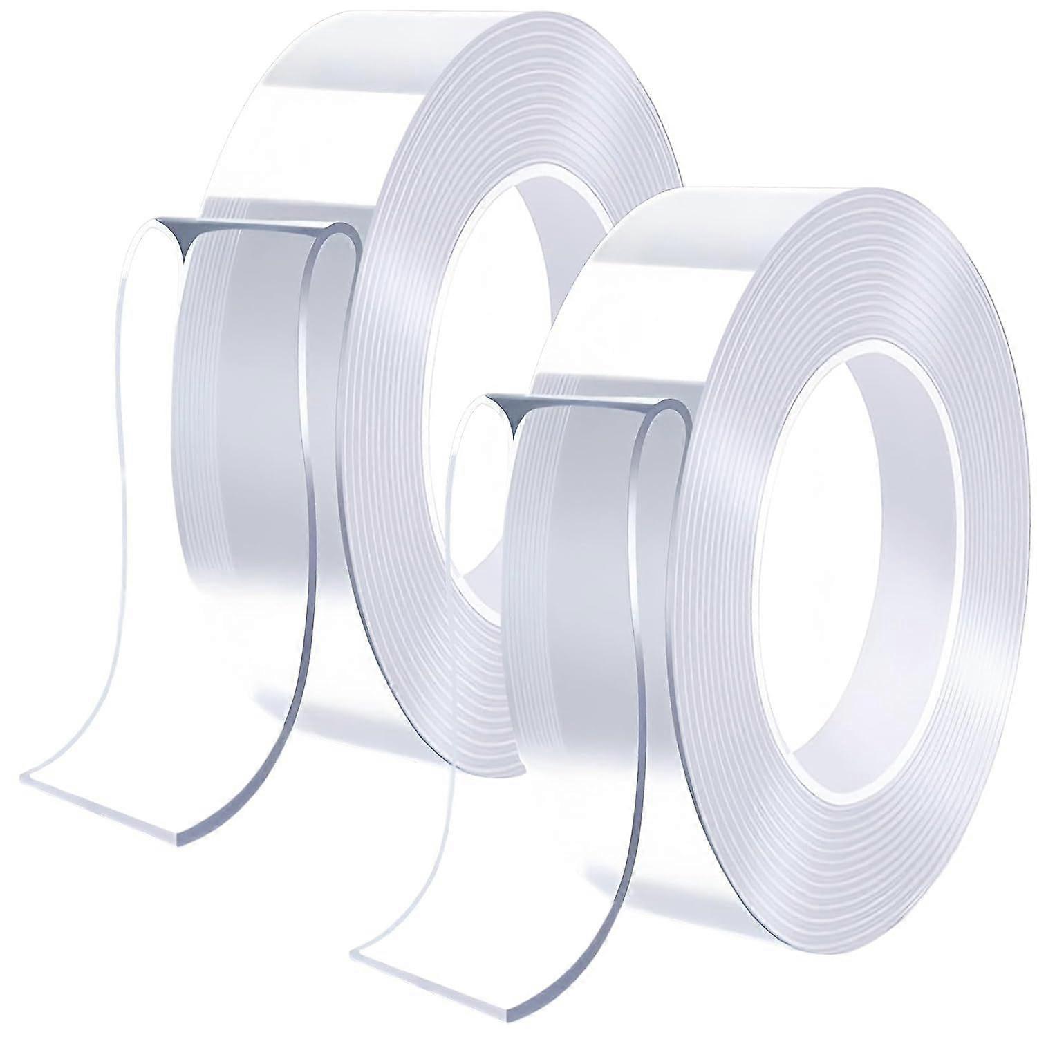 16.4 FT Extra Long: This set comes with 2 rolls of double-sided tape, each measuring 16.4 feet x 1.2 inches, width 0.08 inches (2 mm) Strong Sticky: Heavy duty double sided tape have a super strong adhesive power and could be easily adhered to the surface of various objects. Double sided sticky tape can be cut, stretched, bent and folded into various shapes to meet your needs Easy to Use: Double sided tape heavy duty can be stuck to almost any smooth surface and can be easily removed without damaging the surface. Please note: do not use on painted walls Widely Used: This clear double sided tape could stick to almost any smooth surface for Household living room, bedroom, kitchen, toilet and other occasions Installation Tips: Please keep the mounting surface dry, clean and free of oil when mounting, paste the tape on the mounting surface, press gently to make the tape fully contact with the sticking surface
