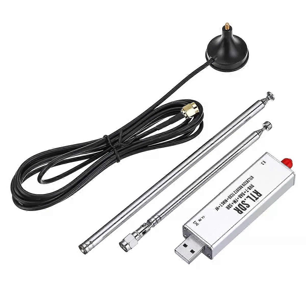 01MHz-17GHz TCXO Stable Full Band RTL SDR Receiver Full Kit with Antenna Aviation Band ADSB With Antenna 0.1MHz-1.7GHz TCXO Temperature Compensated High Stability Full Band Software Receiver Aviation Band ADSB Description: Applicable: XP Win7, Win8, Win10, MAC, Android And Other Systems. Material: ABS+PMMA Features: -- Can set automatic search scan. -- The analog subtone and digital subtone can be cracked by software. -- The ID of common digital walkie-talkies can be cracked by software and the voice signal can be demodulated. -- The signal received by the antenna is converted into data by this receiver and sent to the computer, Android phone and other devices through the USB interface. The software on the computer and Android phone and other devices processes the demodulated signal, displays the frequency spectrum, and arbitrarily sets the reception. Bandwidth, signal recording, saving, playback and other functions. Through SDR software, receiving electromagnetic waves in the range of 100KHz-1.7GHz supports AM, FM (NFM, WFM), CW, DSB, LSB, USB demodulation. Can be used to listen to short-wave single-sideband communications, FM radio, intercom calls, aviation bands, meteor monitoring ADS-B decoding radar, AIS signal reception, etc. -- Technical characteristics: This receiver has a built-in 1 ppm temperature compensation crystal [TCXO]. Make the frequency more stable and accurate. The almost zero temperature drift [2 ppm initial deviation, 1 ppm temperature drift] increases the internal chip heat dissipation, making the work more stable. Using the latest RTL2832U + R820T2 solution [R820T2 tuner has slightly better sensitivity than R820T, lower background noise and higher signal-to-noise ratio. Can work more stably at frequencies around 1.5 GHz. ] The Q channel on the RTL2832U is used to increase the direct mining reception of the frequency of 100KHz-24MHz. Achieved 100KHz-1.7GHz full segment reception. Support XP Win7, Win8, Win10, MAC, Android and other systems. Package Including: 1 x Software Receiver 1 x Suction Cup Mount 2 x Telescopic Antenna Note: 1.If you have any problems or concerns, please contact us, we are always there. 2.Please allow 1-3cm measuring deviation due to manual measurement.Thanks for your understanding. 3.Monitors are not calibrated same, item colour displayed in photos may be showing slightly different from the real object. Please take the real one as standard. _x000D_