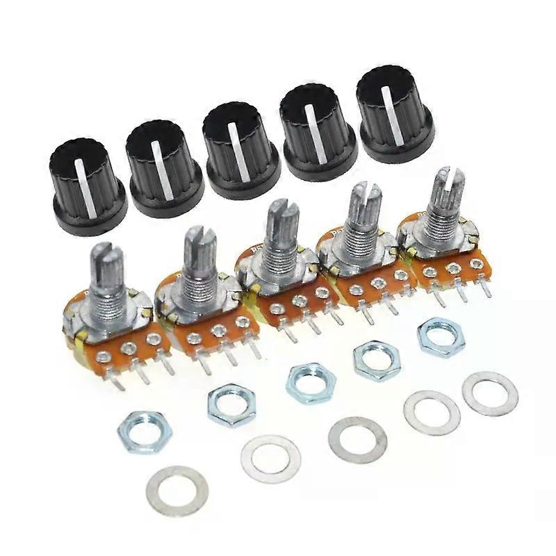 5Sets WH148 15mm 3 Pin Linear Taper Rotary Potentiometer Resistor 1K 2K 5K 10K 20K 50K 100K 500K Ohm For Arduino With Knob Cap