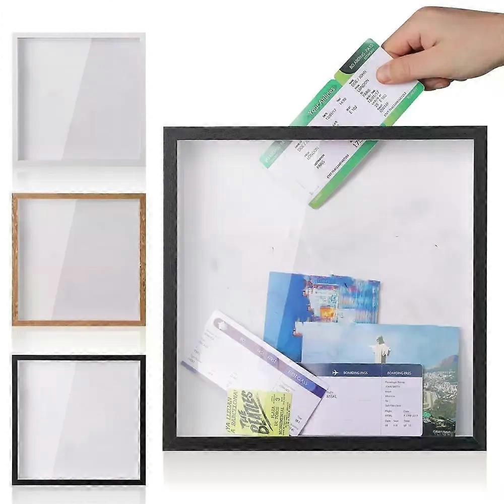 Multifunctional Wooden Adventure Archive Box Square Transparent Travel Shadow Box with Slot Picture Frame Tabletop