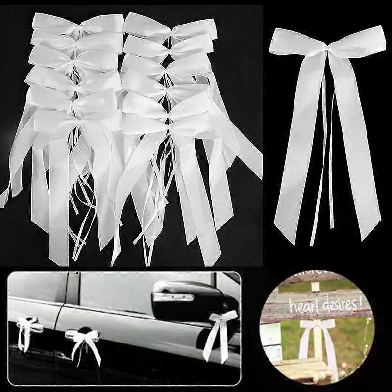 50pcs White Ribbon Bows for Wedding Car Wine Glass Decorations Bridal Shower Birthday Party Chair Bowknots Christmas Gift Wrap