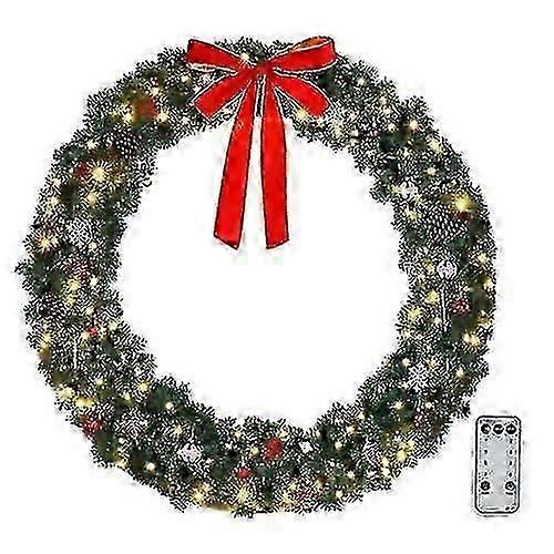 Outdoor Christmas Wreath with Pre-Lit LED Lights and Bow Decorations - 48-Inch Large Holiday Decoration for Doors Windows