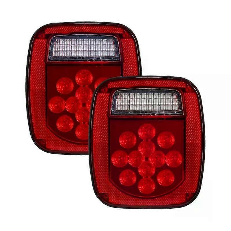 39 LEDs Red+White Double Colors Tail Light Brake Reverse Turn Signal Light for Jeep Wrangler TJ CJ 76-06 _x000D_ _x000D_ _x000D_ _x000D_ Fitment: For Jeep Wrangler TJ CJ 76-06 Wire Connection Tips: 1. Black Wire is negative; 2. White Wire, Reverse Lights (white) 3. Green Wire, License Plate Light (green) 4. Red Wire, Tail Light (red) Features: Red LED Stud Mount Combination Lights with Tail Lights, White LED Reverse and License Plate Lights for Truck Trailer Boat Jeep TJ CJ YJ JK 5.5inch LED Universal Stud Mount Combination Tail Light With 39 LED (12 Red LED as Tail light,no brake light function;21 White LED as Reverse Lights;6 Green LED as License Plate Lights;Black negative) These Lights are impact resistant and less susceptible to shock damage. Each LED is directly wired and water-tight sealed. These LEDs draw less current, generate less heat and are brighter and light faster than an incandescent bulb. Stud Mount Installation. Specifications: Material: ABS + LED LED color:Red&White Size:6.7x5.8x2.5" Current: 0.5 (A) Voltage: 12 (V) Power: 10 (W) Package include: 2pcs Tail Lights Note: - Please allow 1-3CM differs due to manual measurement. - Due to the different display and different light, the picture may not reflect the actual color of the item. Thanks for your understanding. _x000D_ _x000D_